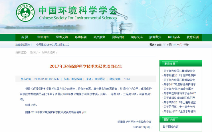 “環(huán)境保護(hù)科學(xué)技術(shù)獎(jiǎng)”是我國(guó)環(huán)境保護(hù)科研領(lǐng)域中的重要獎(jiǎng)項(xiàng),旨在鼓勵(lì)環(huán)保科技創(chuàng)新,獎(jiǎng)勵(lì)在環(huán)保科研活動(dòng)中做出突出貢獻(xiàn)的單位和個(gè)人,充分調(diào)動(dòng)環(huán)境科學(xué)技術(shù)工作者的積極性和創(chuàng)造性,加速環(huán)境科學(xué)技術(shù)進(jìn)步,推動(dòng)我國(guó)環(huán)保事業(yè)的發(fā)展。