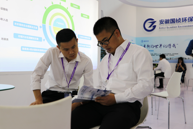 下午,中國環(huán)境保護(hù)產(chǎn)業(yè)協(xié)會副會長張聯(lián)先生來我司展臺參觀,國禎科學(xué)技術(shù)戰(zhàn)略研究院侯紅勛博士向張聯(lián)副會長一行詳細(xì)匯報了國禎環(huán)保的基本情況及公司核心技術(shù)。張聯(lián)副會長對國禎環(huán)保近年來在環(huán)保領(lǐng)域所取得的成績給予高度評價,并指出在“水十條”及國務(wù)院“十三五”生態(tài)環(huán)境保護(hù)規(guī)劃相繼出臺的大背景下,國禎環(huán)保要抓住機(jī)遇,為建設(shè)藍(lán)天常在、青山常在、綠水常在的美麗中國貢獻(xiàn)力量。