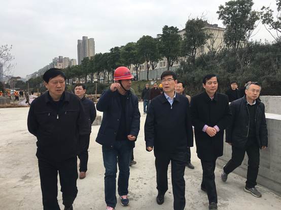 2月21日下午3時,銅陵市市委書記李猛、市建委主任周劍、副主任楊平等領(lǐng)導(dǎo)在國禎環(huán)保公司副總經(jīng)理王立余的陪同下,視察我司承建的銅陵市黑砂河水系治理EPC工程項目。